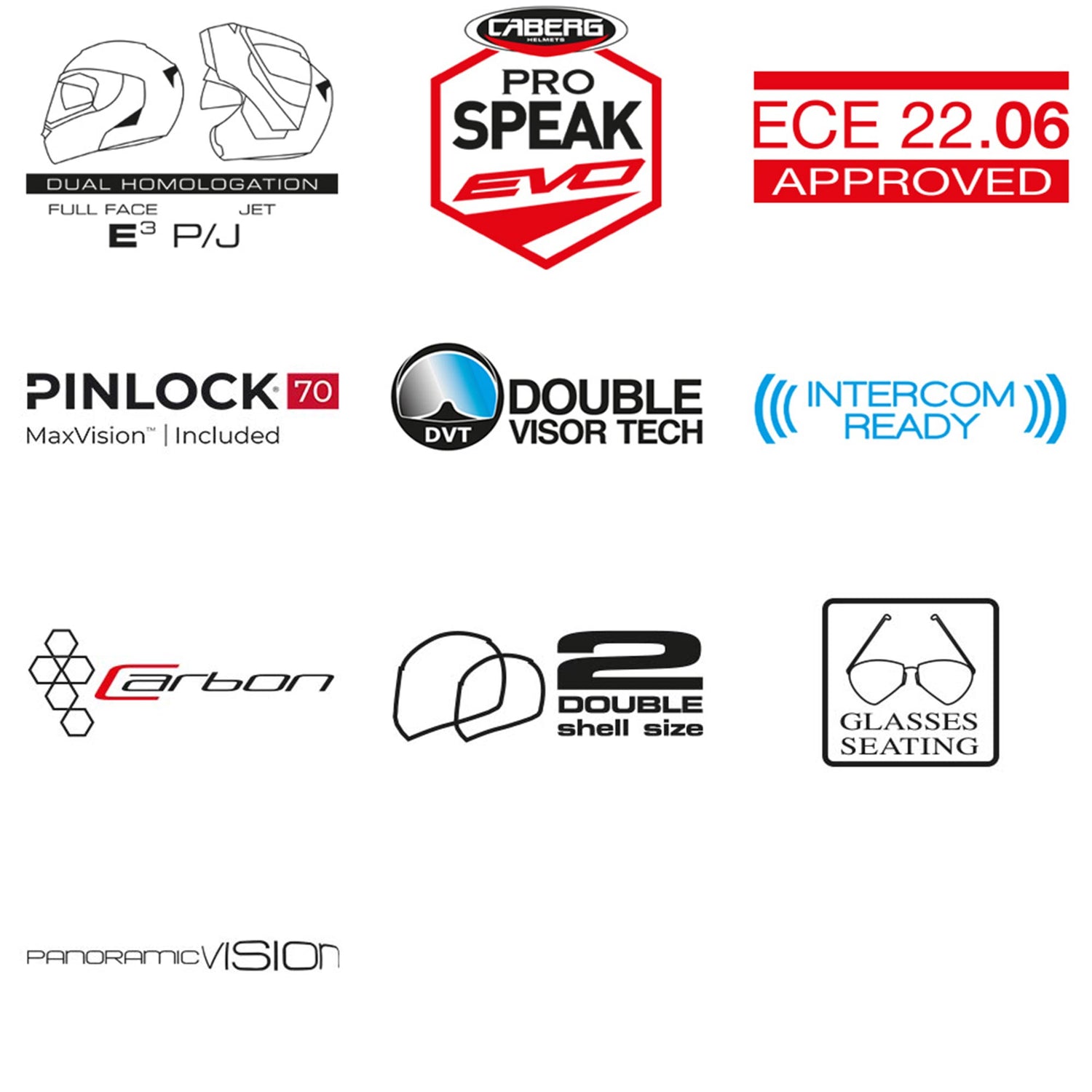 Dank der P/J-Homologation nach ECE 22.06 kann der Helm sowohl als Integralhelm als auch als Jethelm gefahren werden. Ein effizientes Belüftungssystem mit vorderen Lufteinlässen und hinteren Auslässen gewährleistet eine gleichmäßige Luftzirkulation auch bei hohen Temperaturen. Das Panoramic Ultra-Wide Visor bietet ein besonders breites Sichtfeld mit großzügigem Frontalblick. Serienmäßig sind eine Pinlock® 70 MaxVision Antifogscheibe sowie eine integrierte Sonnenblende integriert.