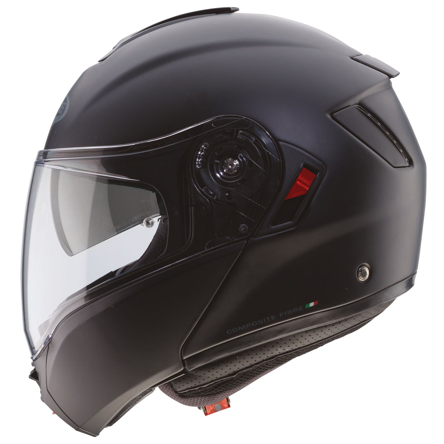 Die atmungsaktive Innenausstattung ist herausnehmbar, waschbar und sanitized-behandelt. Brillenfreundliche Wangenpolster erhöhen den Tragekomfort zusätzlich. Der Helm ist kompatibel mit dem Caberg Pro Speak Evo sowie mit handelsüblichen Bluetooth-Kommunikationssystemen.